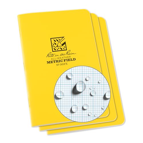 Rite In The Rain Weatherproof Stapled Notebook, 4.625″ x 7″, Yellow Cover, Metric Field Pattern, 3 Pack (No. 361FX)